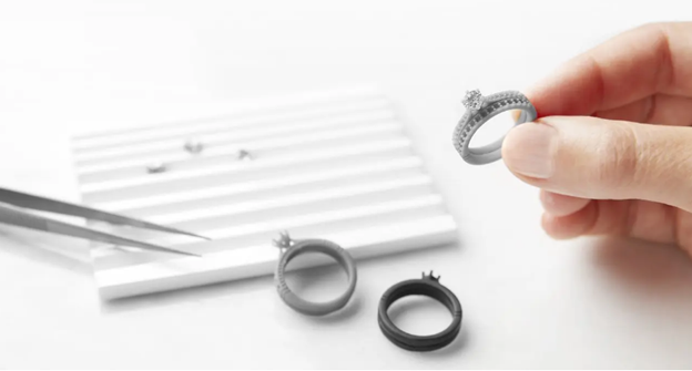 تولید جواهرات با استفاده از فناوری پرینت سه بعدی، مزایای طراحی و فرآیند ساخت دیجیتال و اصول ریخته گری دقیق یا ریخته گری مومی فداشونده را تقویت می کند. طراحان جواهرات با روش ریخته گری مومی فداشونده الگوی اصلی را در موم حک کرده، الگوی موم را در قالبی قرار می دهند تا بسوزد، و سپس فلزاتی مانند طلا یا نقره را در حفره قالب می ریزند تا قطعه ریخته گری شده حاصل شود. در پایان برای دستیابی به ظاهر نهایی، طراحان قطعه ریخته گری را صیقل می دهند.
